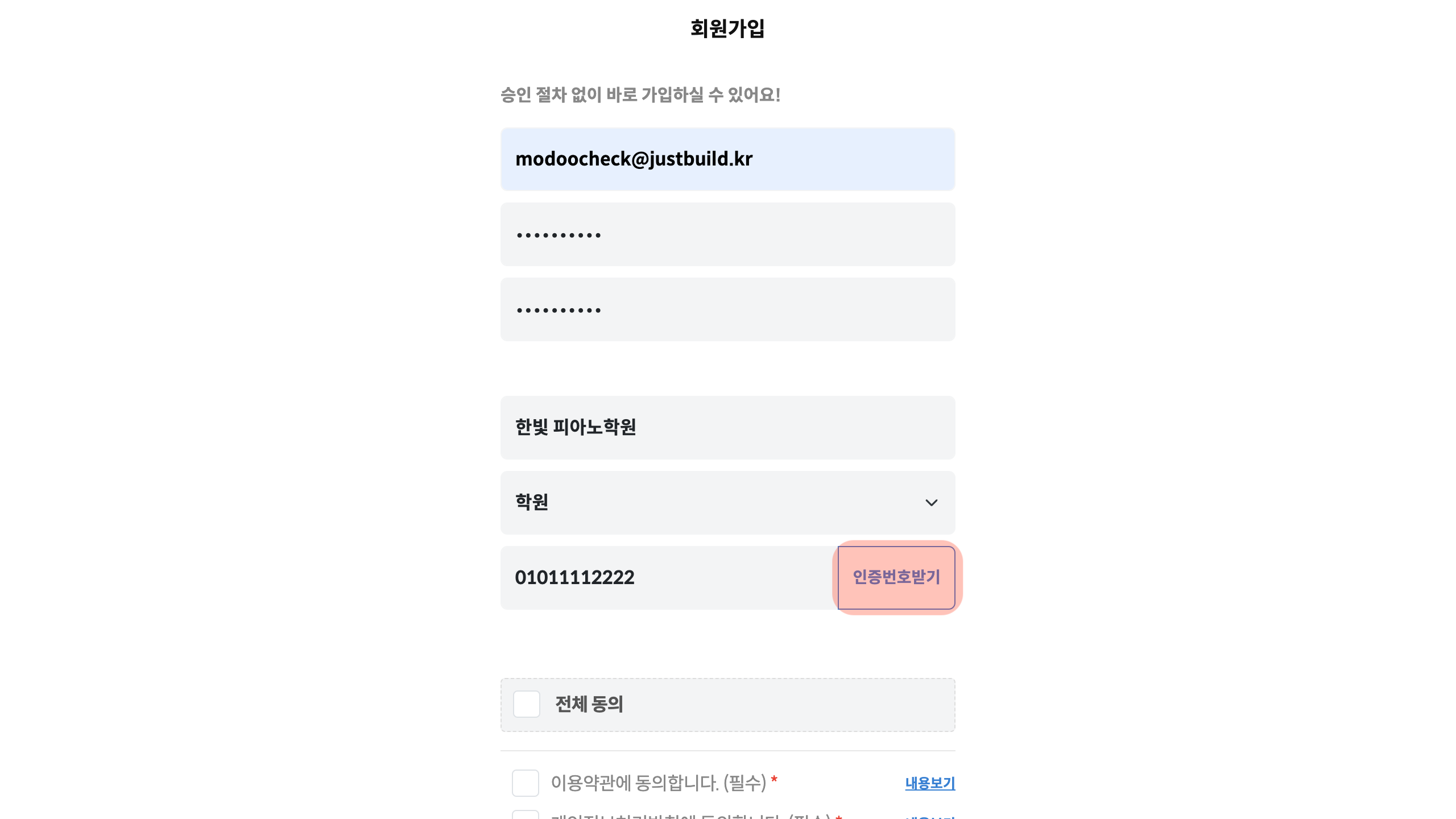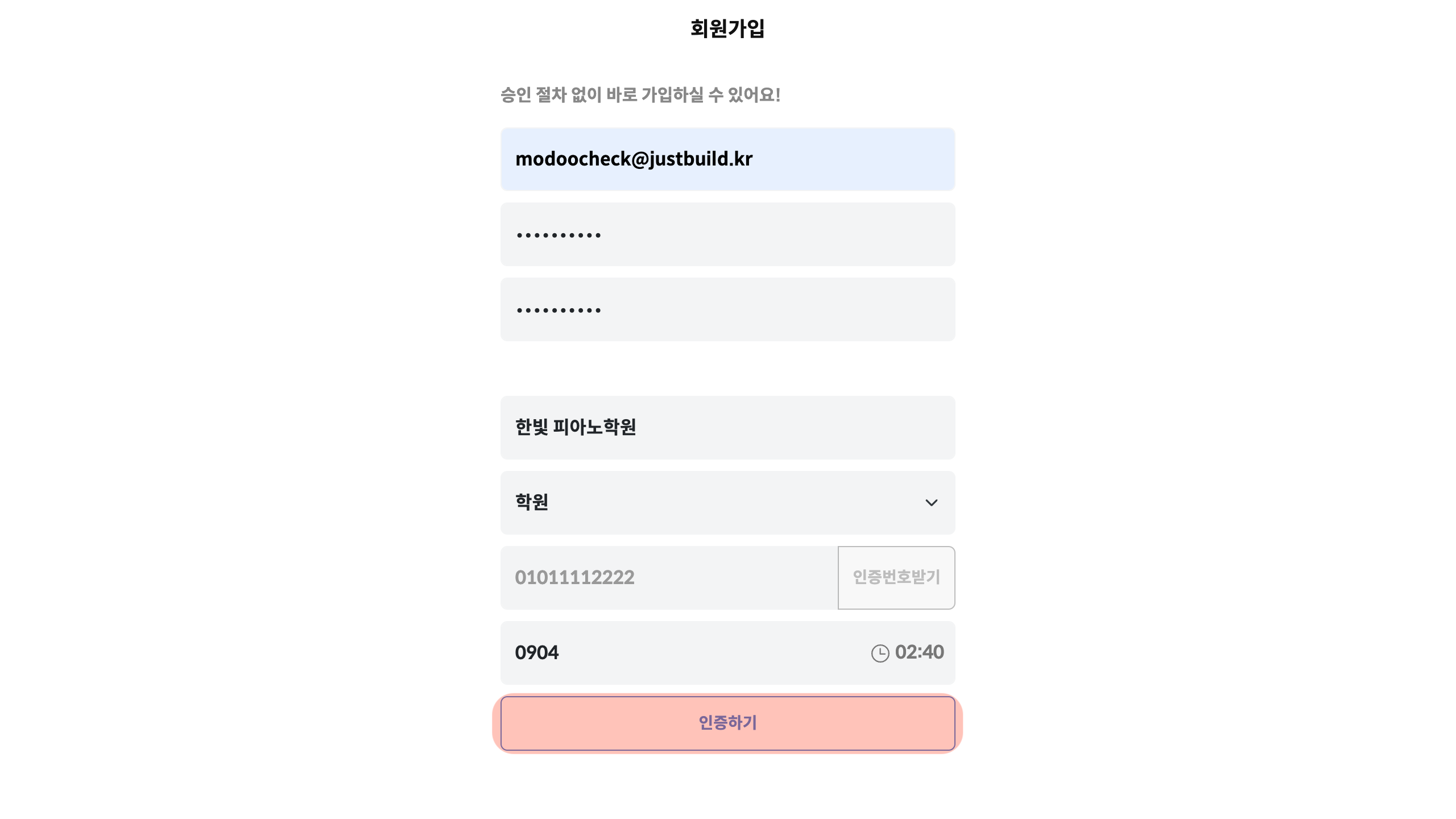 SMS로 받은 인증번호를 입력하고 인증하기를 눌러 주세요.